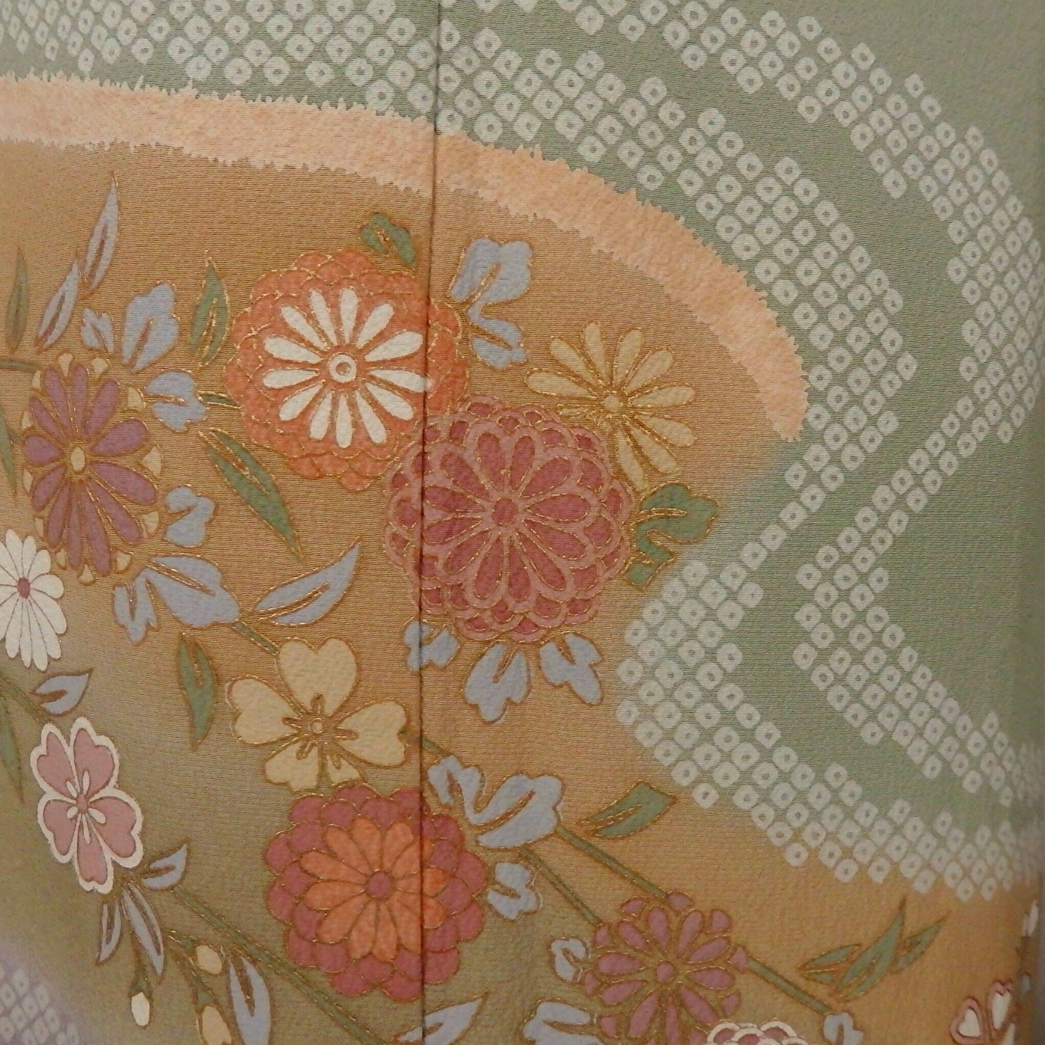 *正絹 衿の折り返し、右胸、右袖、袖口にうっすらシミがありますが、着用で目立つ程ではありません。