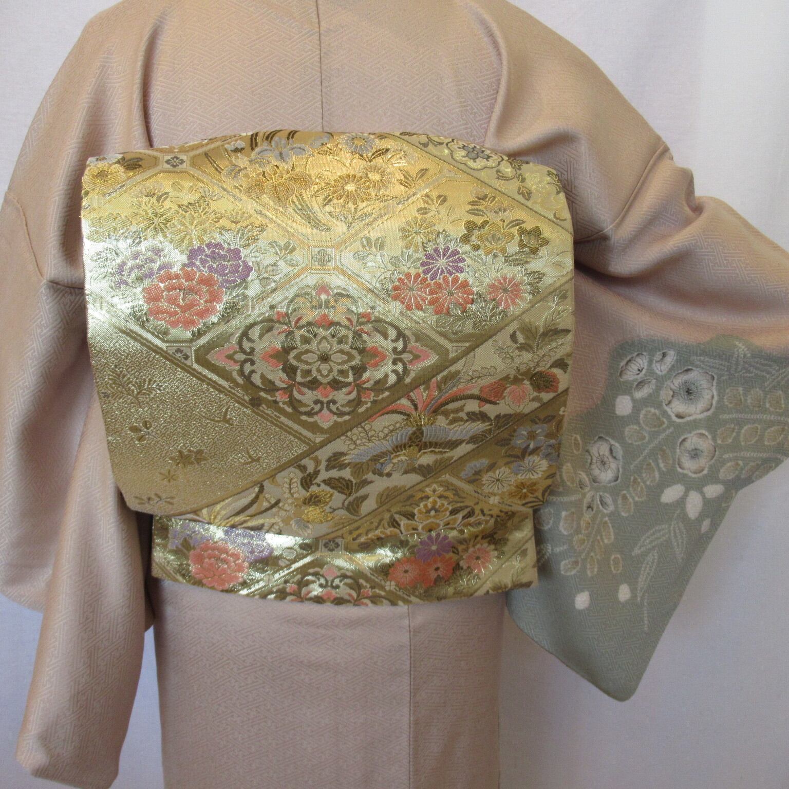 素材は絹、生地は地模様が入った綸子です。