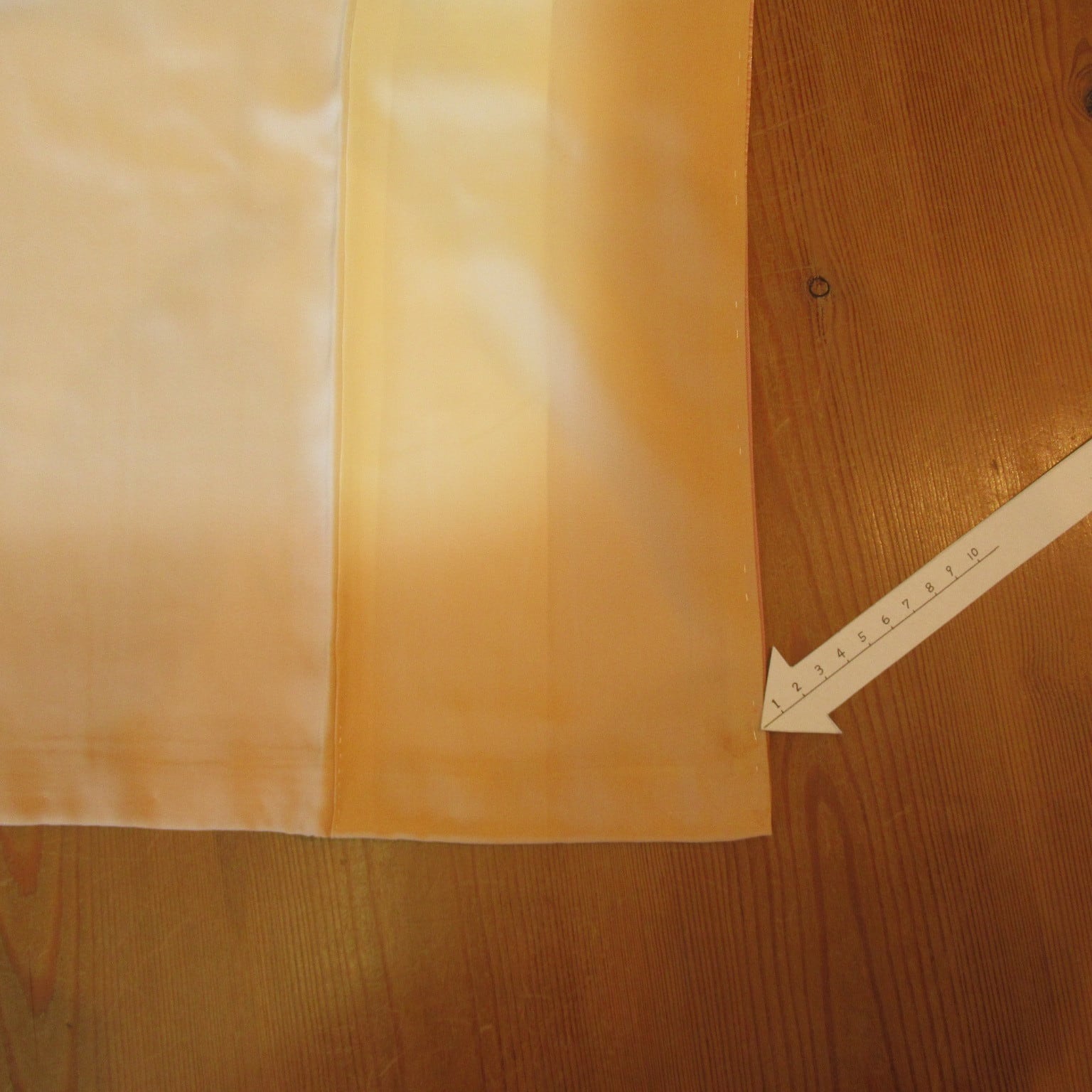 素材は絹、生地は地模様の入った綸子、八掛は黄色のボカシです。