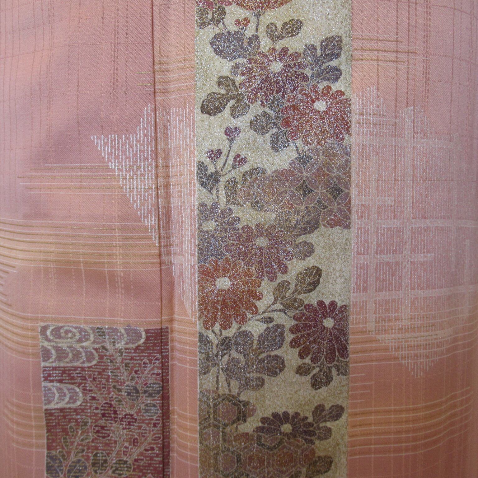 ◉着物…ピンク地に短冊文様が可愛い付け下げです。