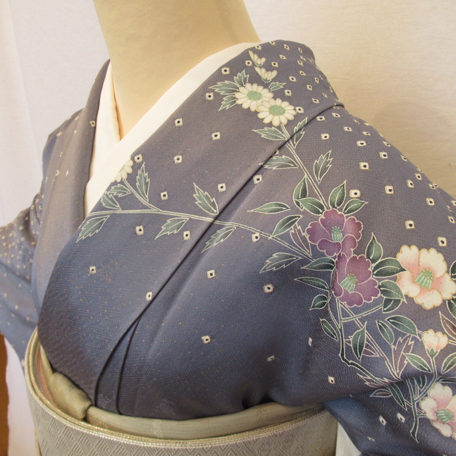 ◉着物‥グレーのボカシに絞りと金彩が華やかで美しい京友禅染訪問着です。