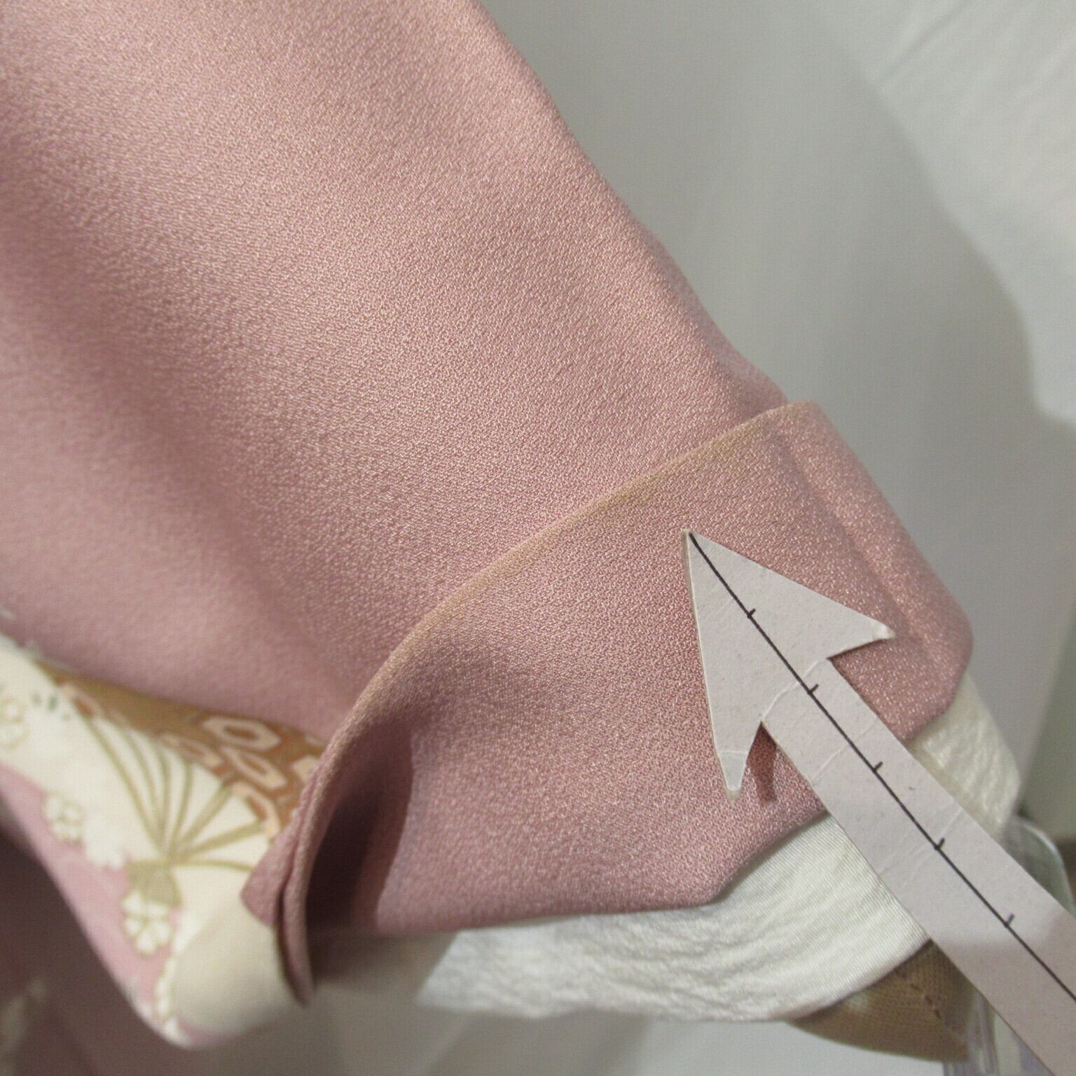 衿の折り返し、袖口裏、上前裾、後ろ裾、裏地にうっすらシミがありますが、着