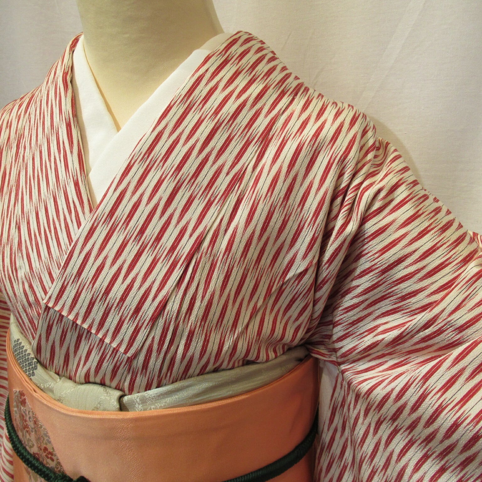 ☀️着物‥白地に赤の矢絣が可愛い袷の小紋です。