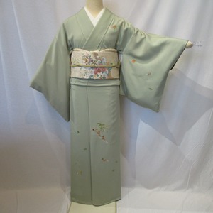 ⭐︎着物‥淡いウグイス色に刺繍が上品で美しい吹き寄せ文様の訪問着です。