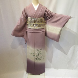 ⭐︎着物‥小豆色からベージュ、紫のボカシに笹と雀が描かれた粋な作家物の訪問着です。
