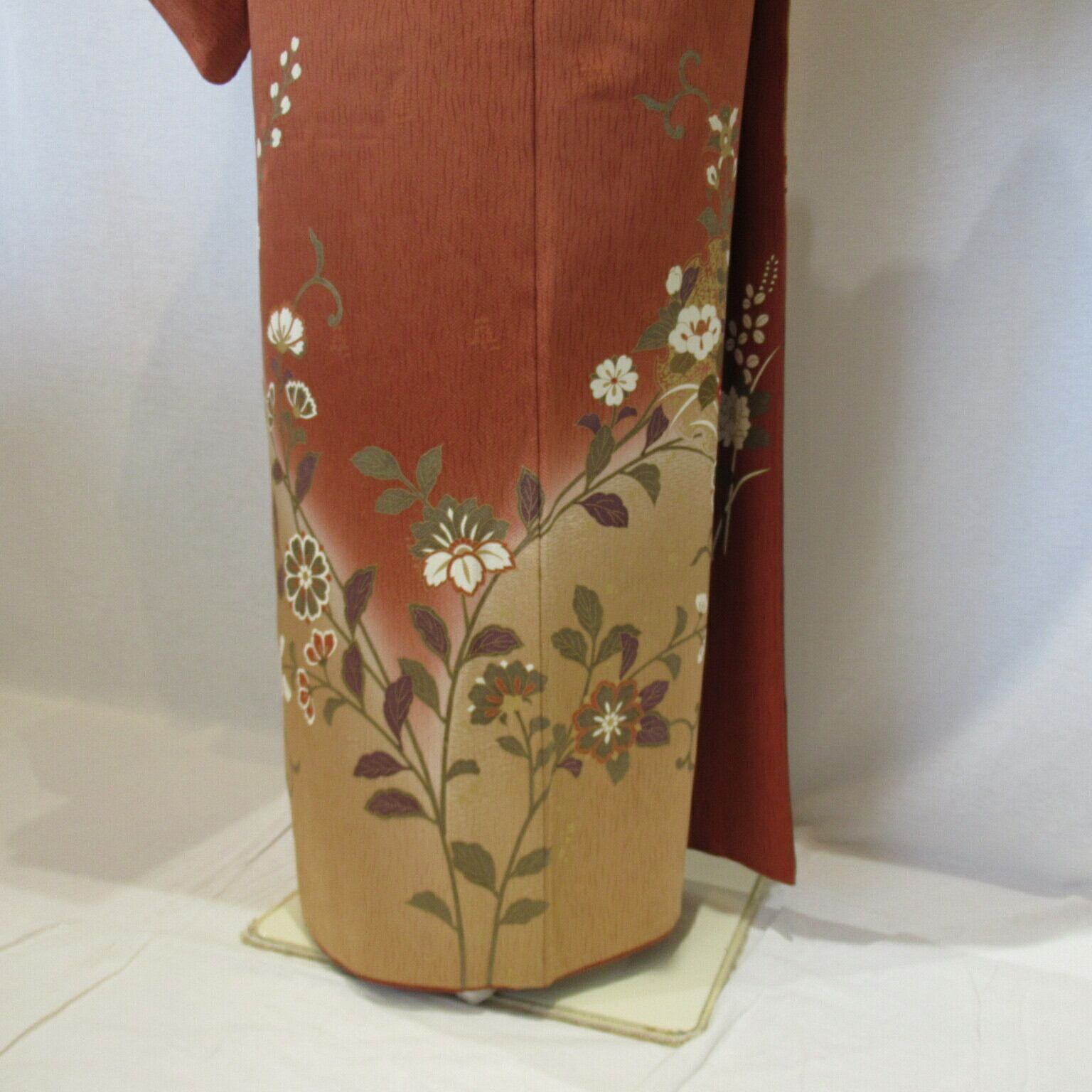 ⭐︎着物‥レンガ色のボカシに花とアラベスク文様が豪華で美しい訪問着です。