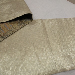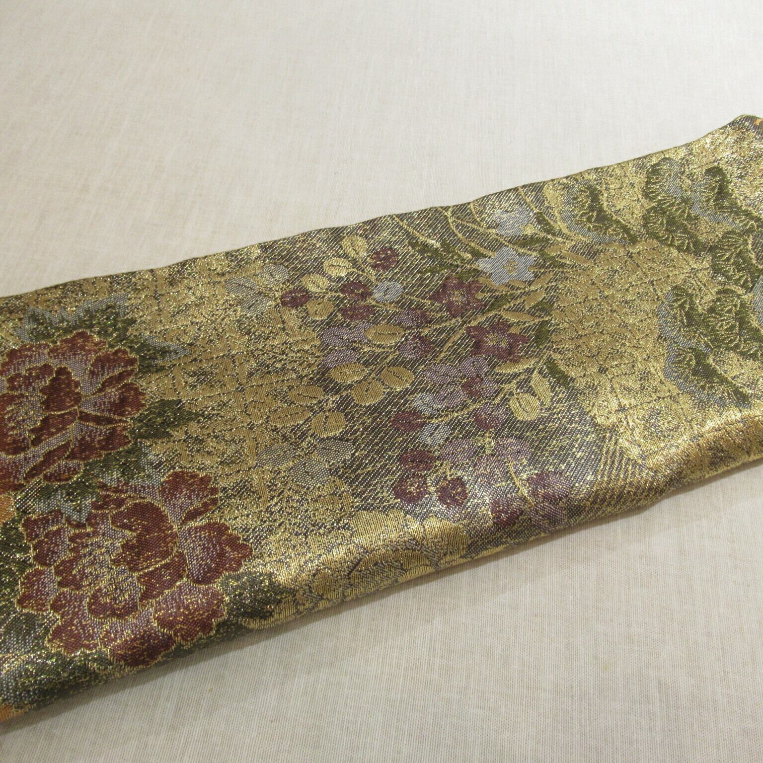 ☆ 金糸で花と風景が豪華で落ち着いた六通の佐賀錦袋帯です。