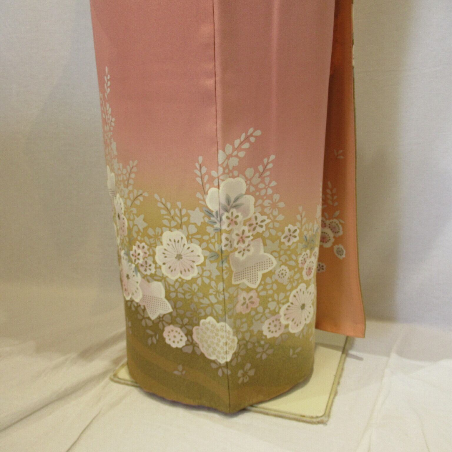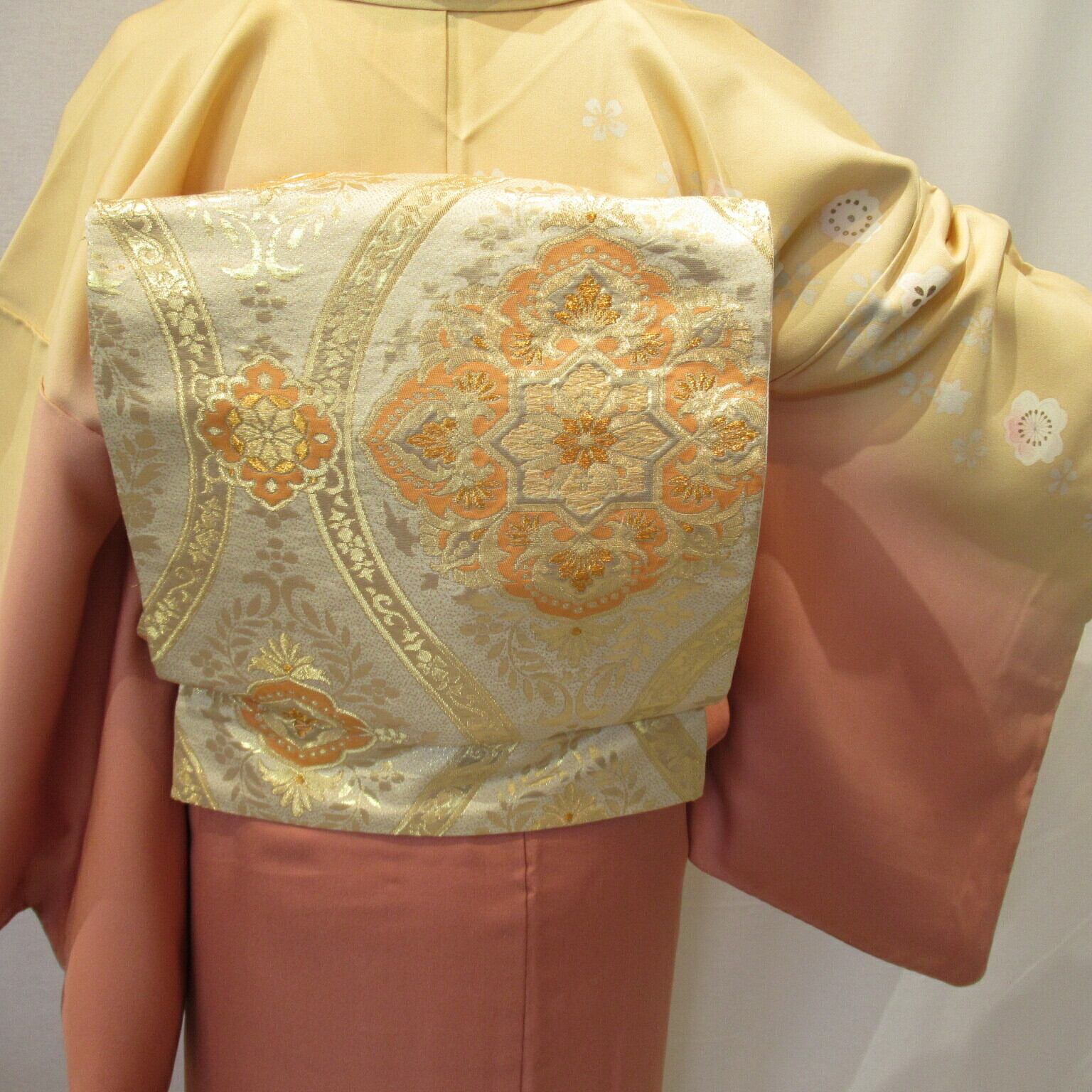 ⭐︎着物‥クリーム色とピンクの染め分けに花文様がはんなり可愛い作家物の訪問着で