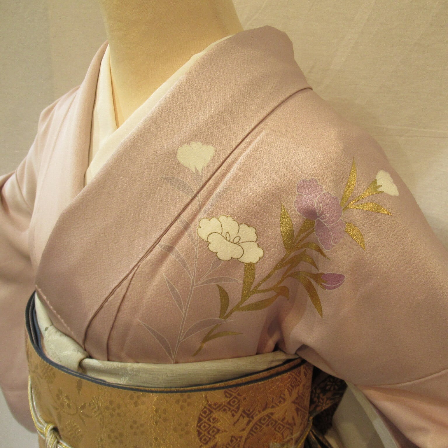 ⭐︎着物‥落ち着いたピンクに花文様と金箔が華やかな訪問着です。