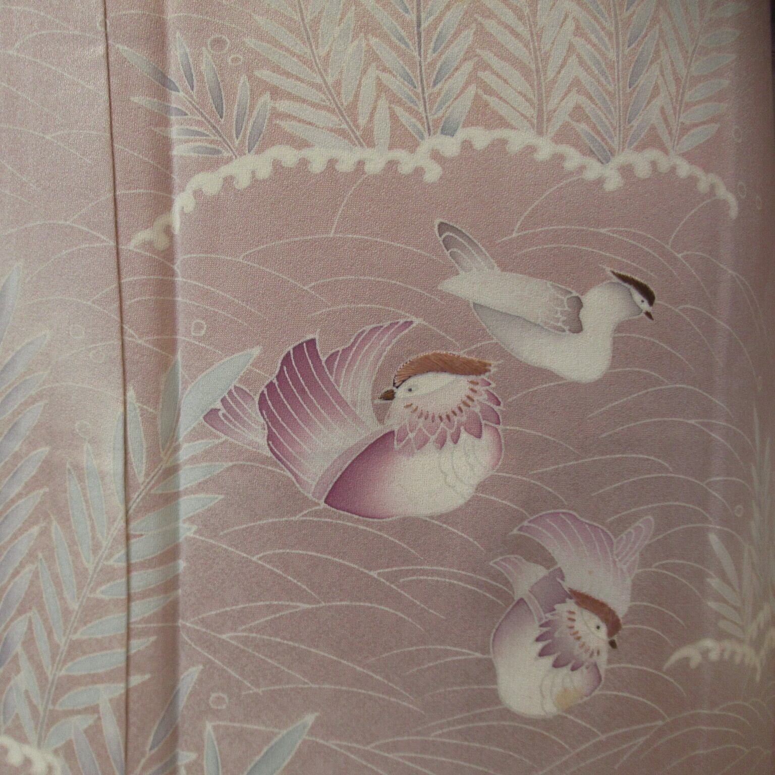 ⭐︎着物‥ ピンクベージュに流水文様とオシドリが落ち着いた上品な訪問着です。