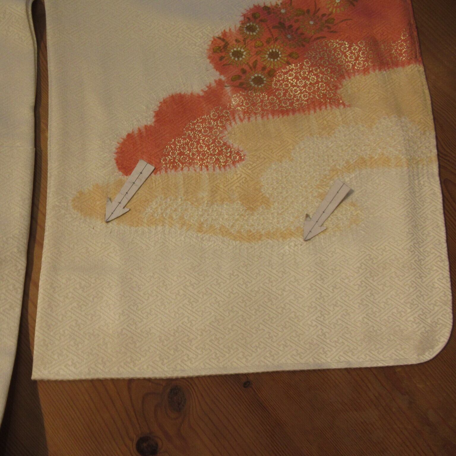 状態は表AA裏AA しつけ付き、左袖前、右袖後にアクがうっすらありますが、