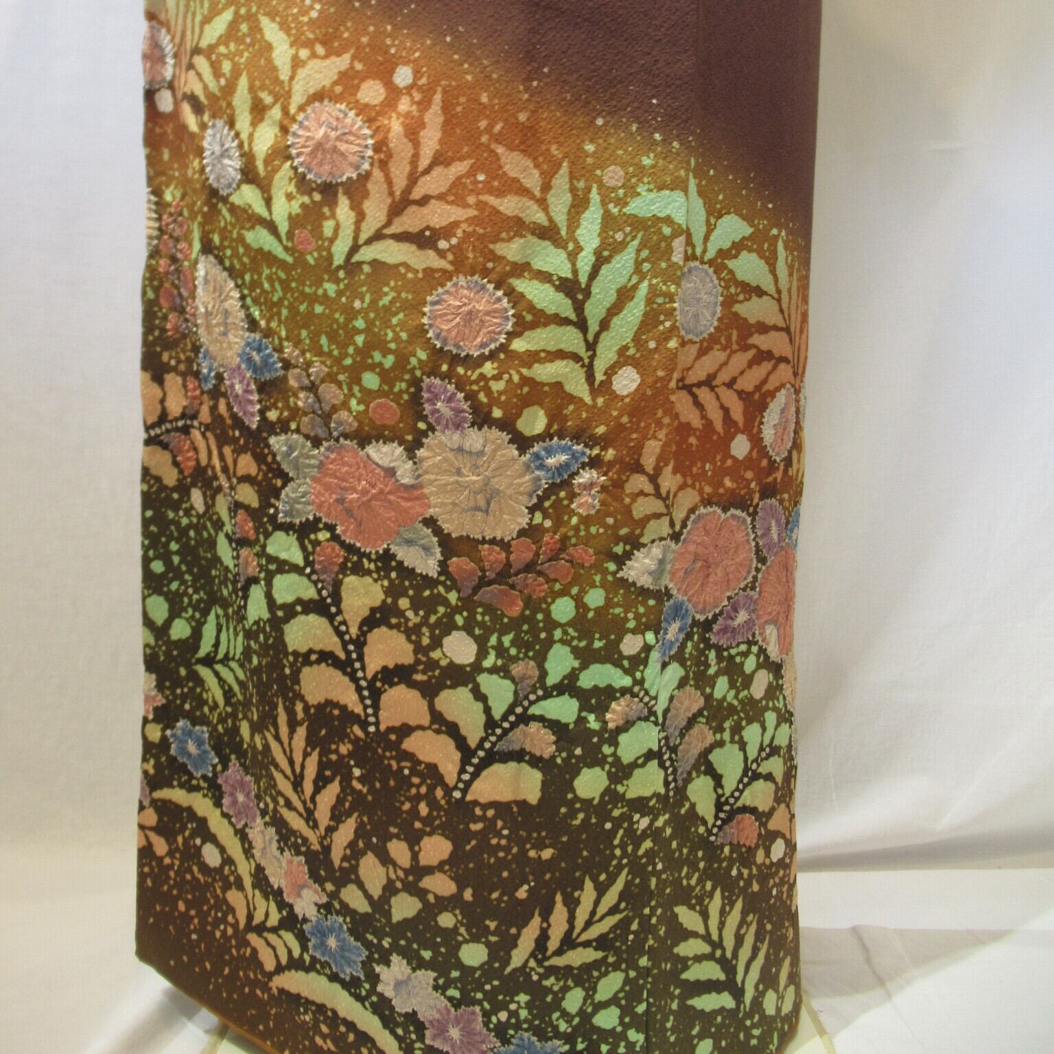 ⭐️着物…ボルドーがかった茶色に辻ヶ花文様が豪華でシックな作家物訪問着です。