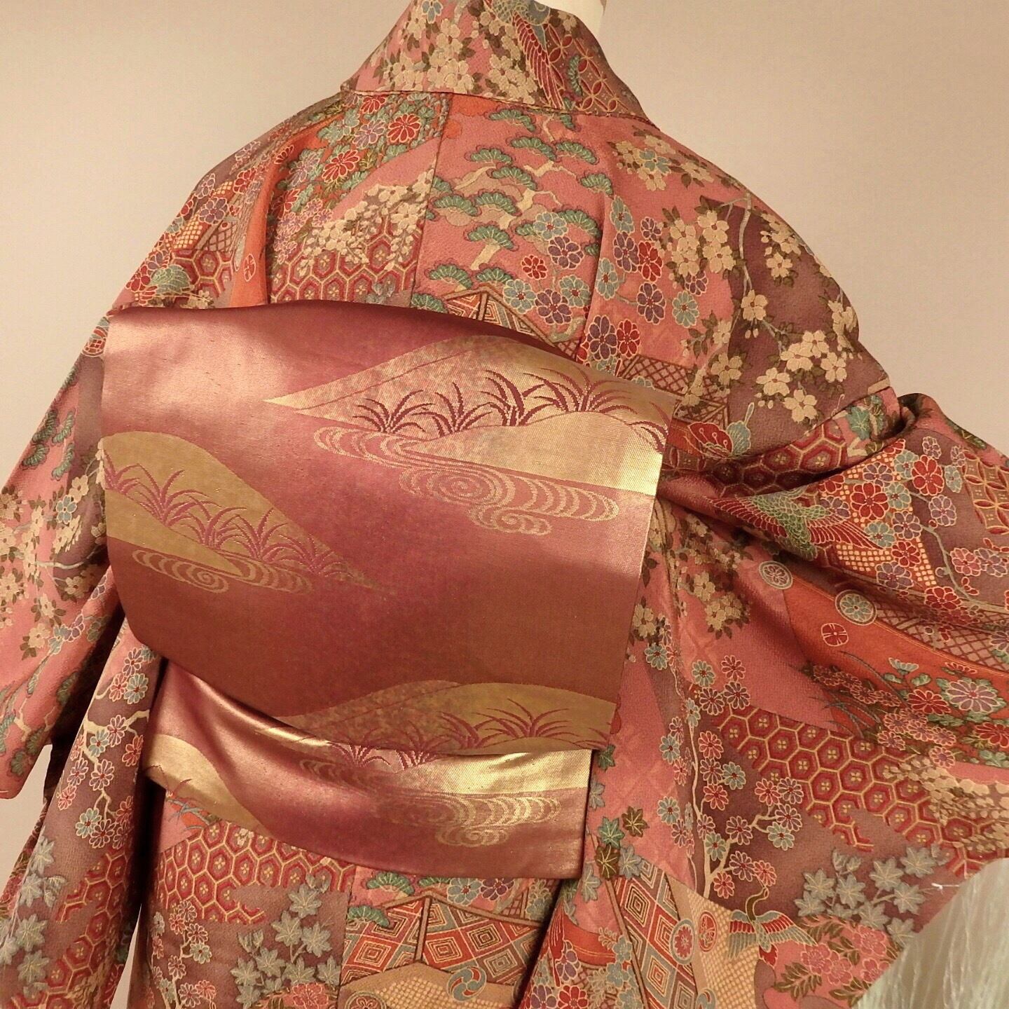 四季折々のお花と鶴や蝶が舞うしっとりしたお着物です。