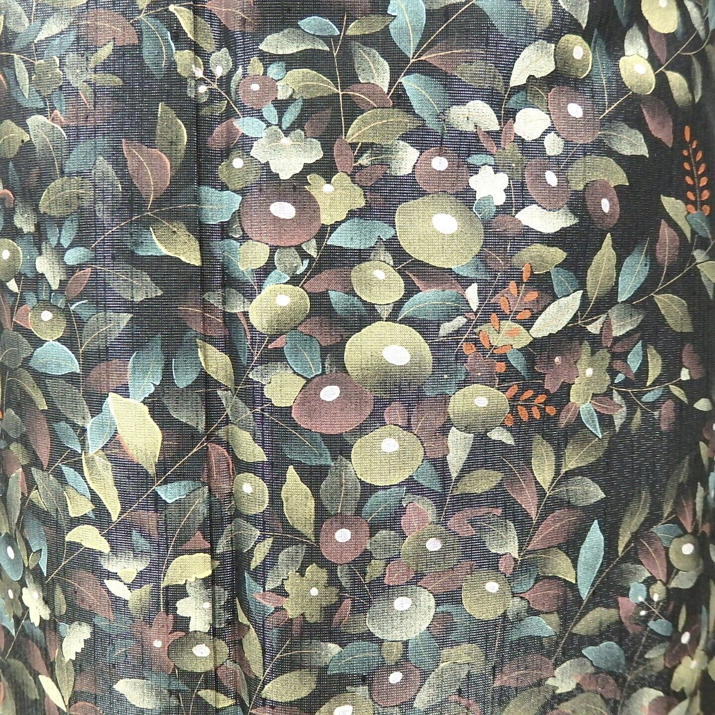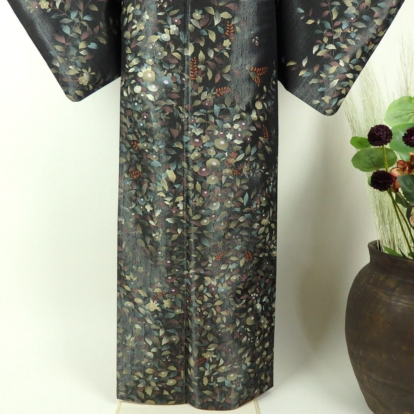 ◉着物… 光沢のある黒に手描きの花が個性的な訪問着です。
